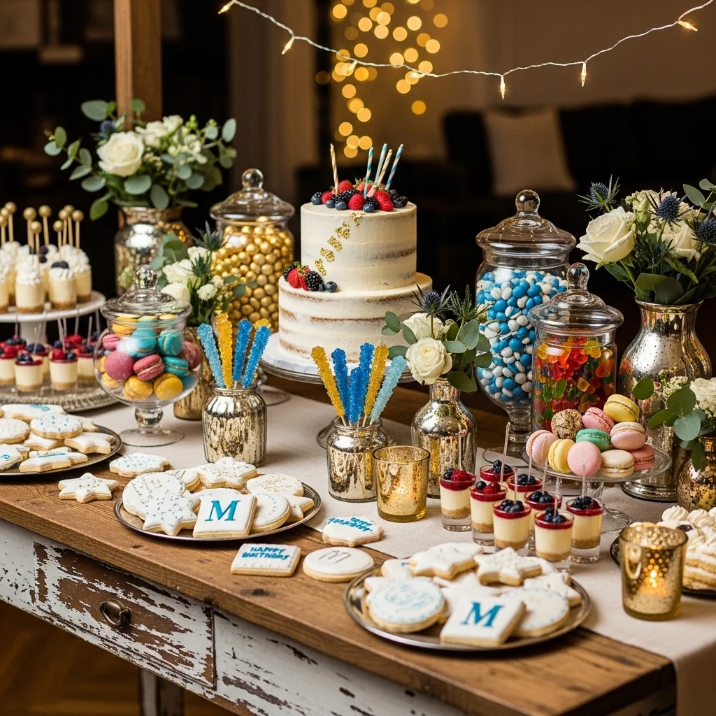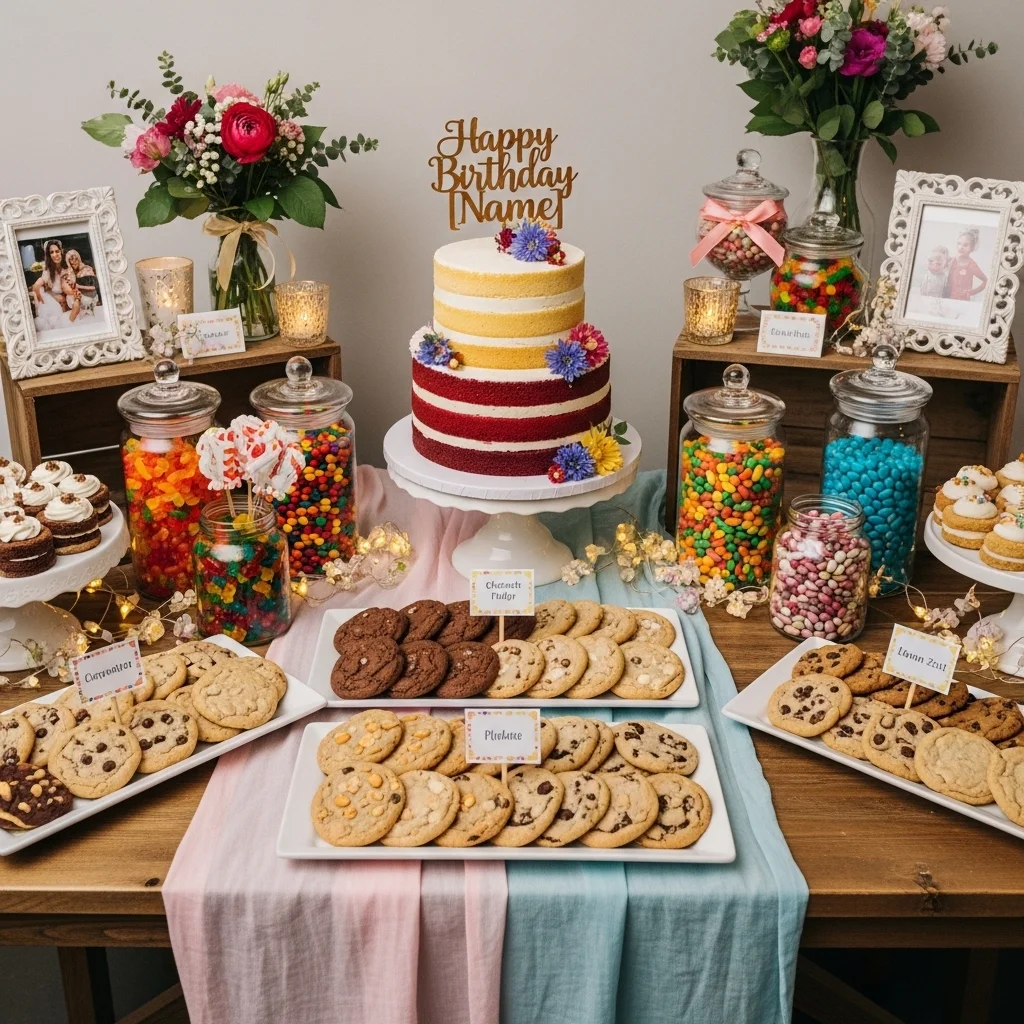 Instead of a traditional cake display, consider a themed dessert table featuring a variety of sweets. Incorporate cakes, cookies, and candies that reflect the birthday person’s favorite flavors. A visually cohesive setup inspires guests to indulge and adds a touch of glamour.