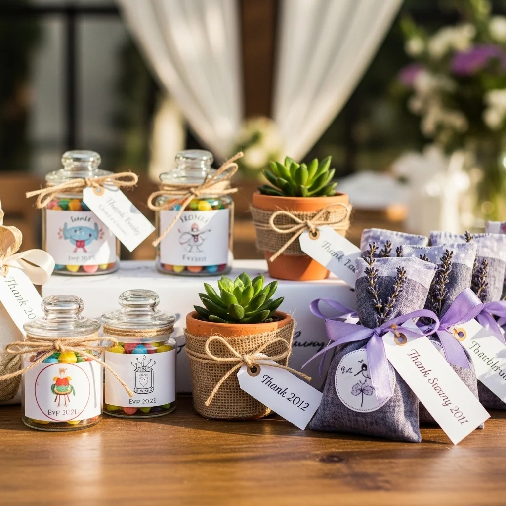 Send guests home with unique, personalized party favors that tie into your theme. Whether it’s custom labels on candy jars, small potted plants, or handmade items, thoughtful gifts remind guests of the special day and show appreciation for their presence.