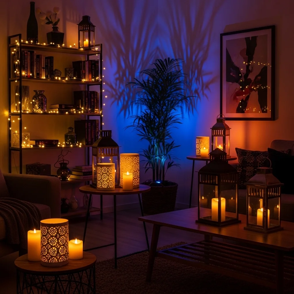 Transform your space from ordinary to extraordinary with strategic lighting. Fairy lights, lanterns, or LED candles can create a warm, inviting atmosphere. For a more dramatic effect, consider using colored lighting or uplighting to spotlight certain areas of your decor.