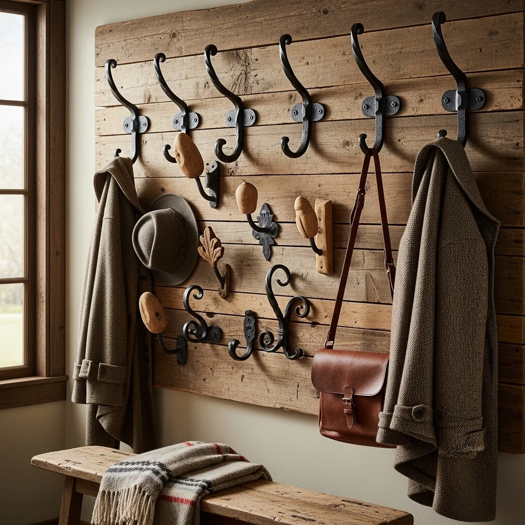 Ditch the standard plastic hooks for rustic wooden or wrought iron alternatives. Wall-mounted hooks can serve both function and decor, providing a convenient place for coats, hats, and bags. Look for pieces with intricate designs to add an artistic touch.