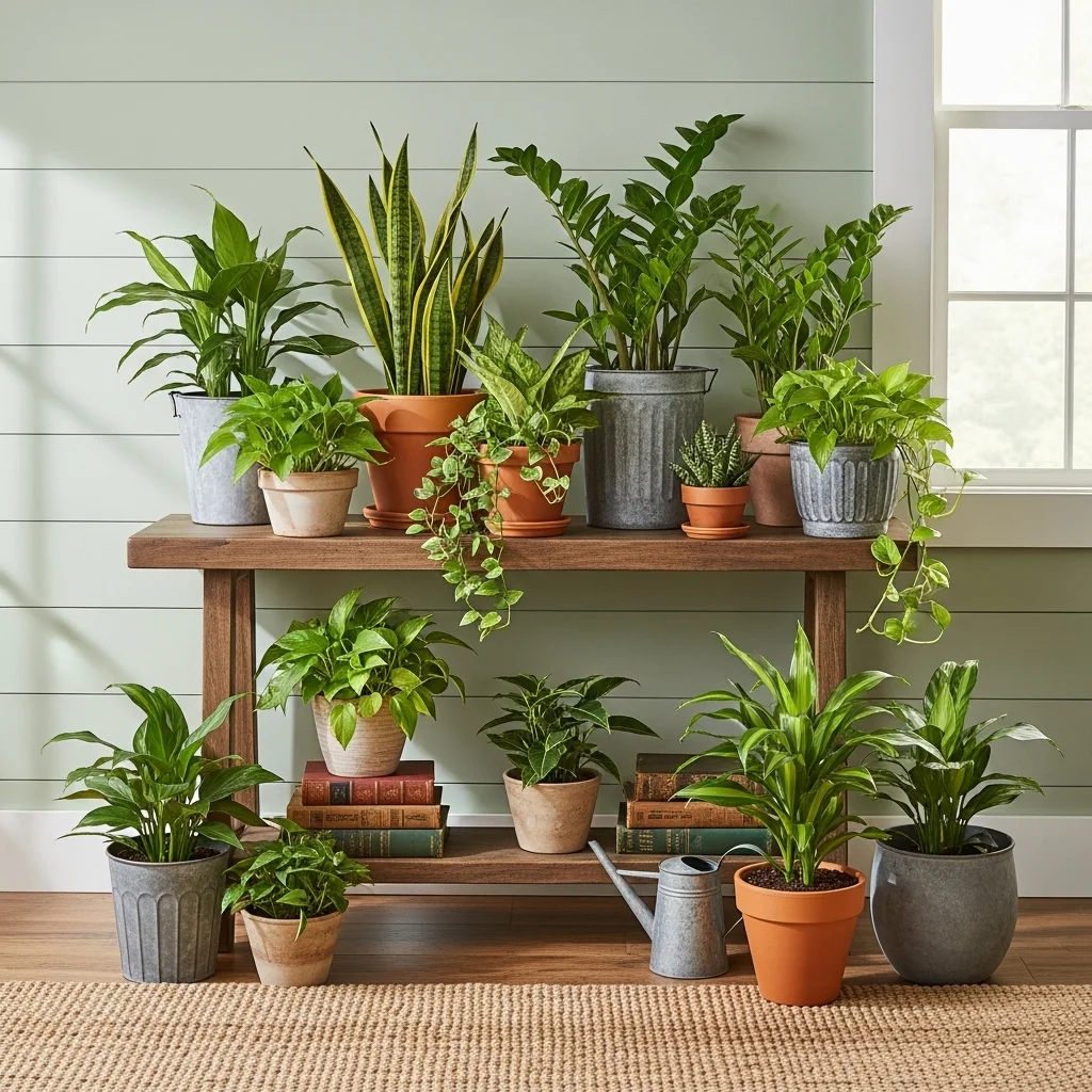Bring a bit of nature indoors with potted plants. Their greenery creates a refreshing focal point and livens up the space. Opt for easy-to-maintain plants in terracotta pots or distressed metal containers to stay within the farmhouse aesthetic.