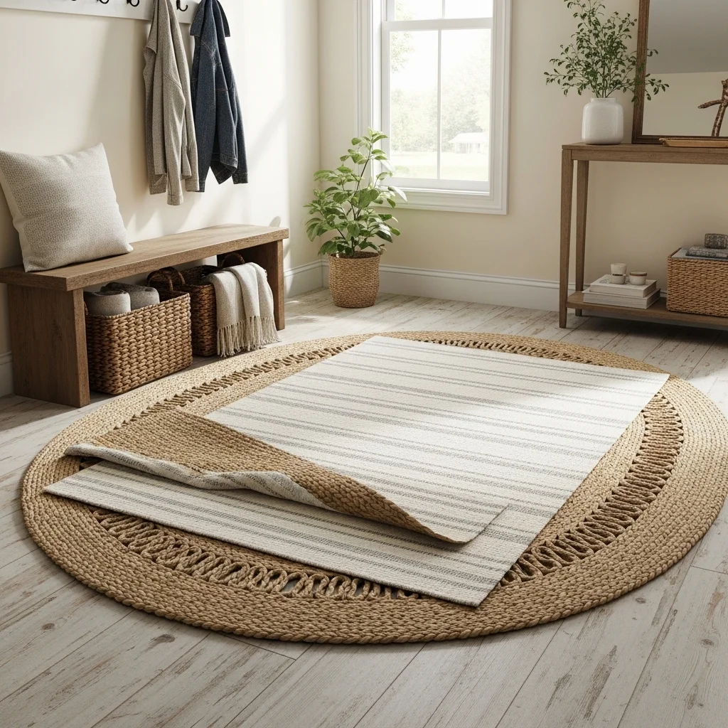 Textiles play a significant role in creating a cozy atmosphere. Consider layering a woven or braided rug at your entryway. This not only adds warmth underfoot but also creates a welcoming vibe. Opt for neutral colors or soft patterns that complement the rest of your farmhouse decor.
