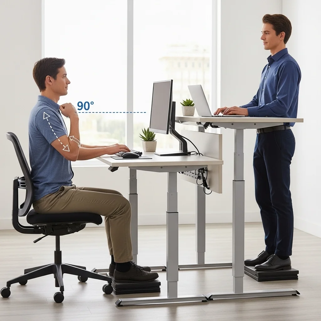 Ensure your desk is at the right height for your body. When seated, your elbows should be at a 90-degree angle and close to your body. If you frequently work standing, consider a height-adjustable desk that allows you to alternate between sitting and standing.