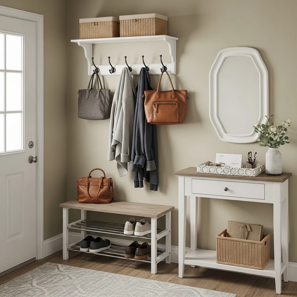 Make use of your wall space! Floating shelves, wall-mounted racks, and pegboards can help you display items or store essentials without taking up valuable floor space. This not only declutters but also adds visual interest to the decor.
