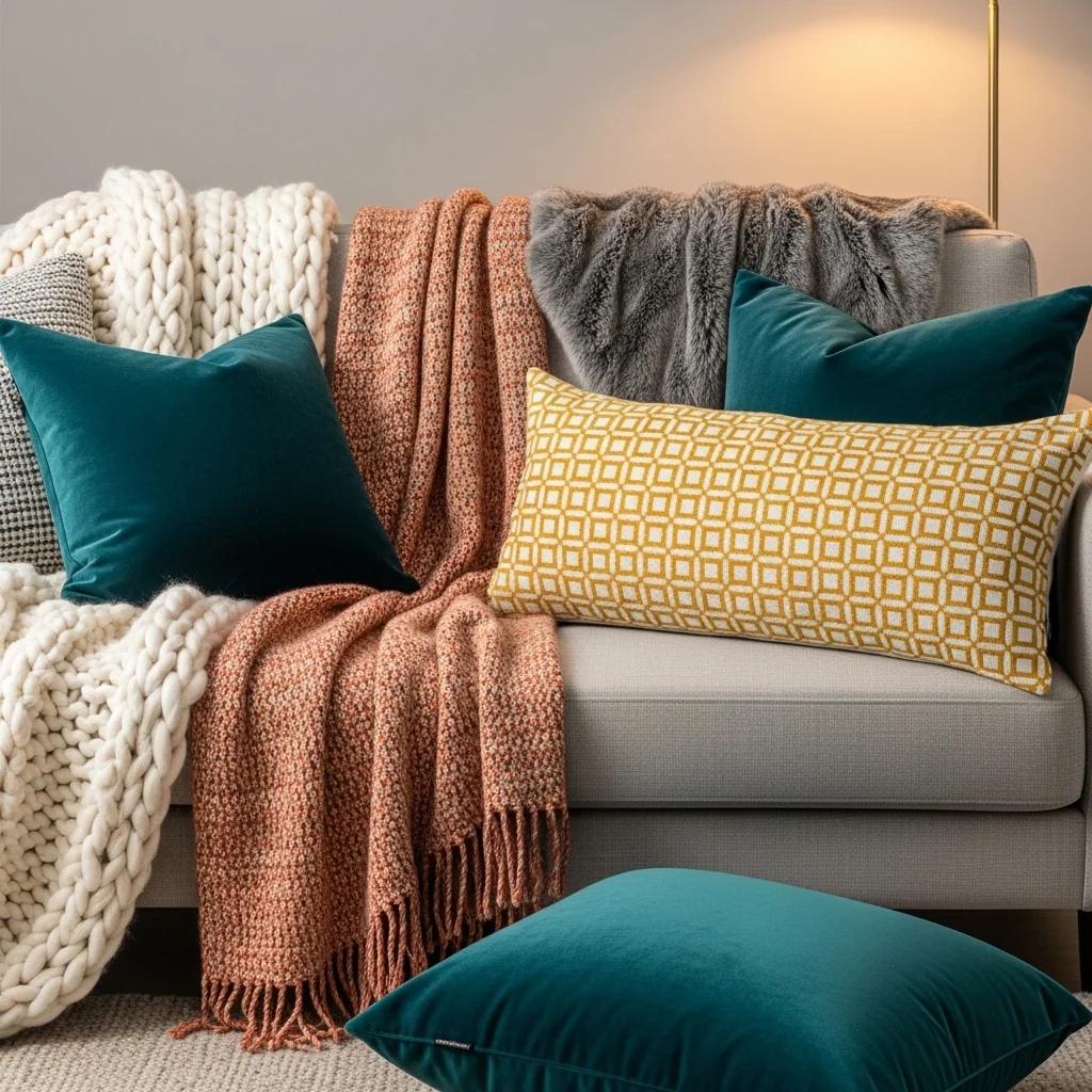 Add oversized cushions or throws to your sofa or bed for a cozy yet stylish look. These pieces can introduce color and texture into your decor, while their size makes them visually appealing.