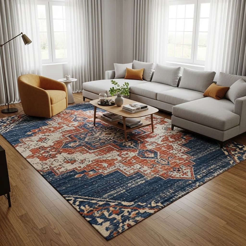 A large area rug can anchor your furniture arrangement while adding warmth and comfort. Select a bold pattern or color to create a dynamic foundation for the room, making it feel cohesive and inviting.