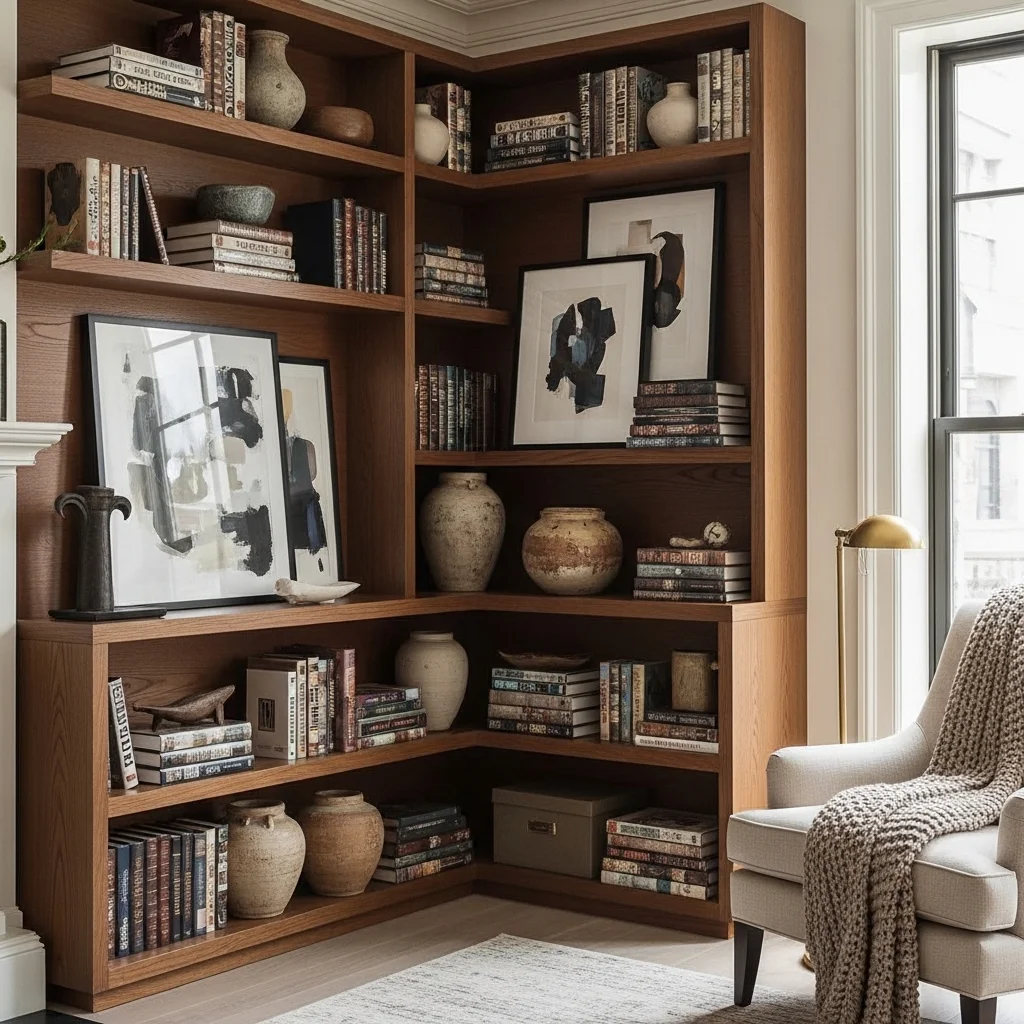 Floors-to-ceiling shelves can serve as both storage and display spaces. Fill them with oversized books, large vases, or art pieces. This will not only serve decor purposes but also keep your space organized.