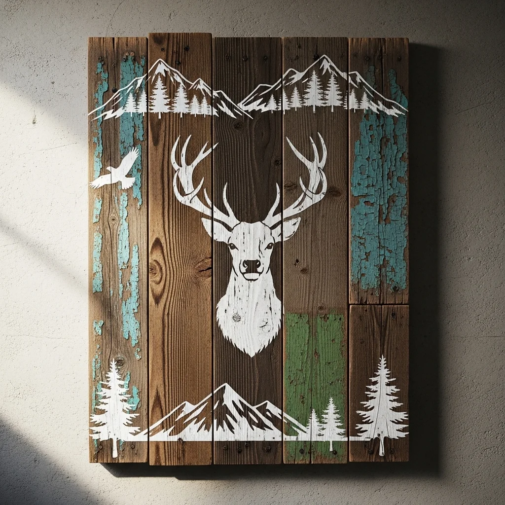 Get creative by crafting your own rustic wood wall art. This could involve painting, stenciling, or even burning designs into wood. Using reclaimed materials adds an extra layer of character and eco-friendliness to your home décor.