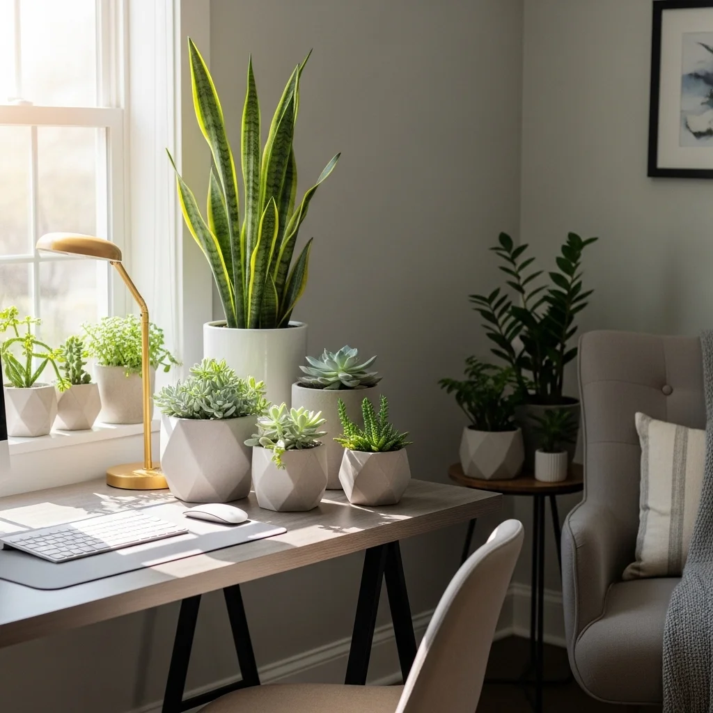 Plants can significantly impact your mood and productivity. Incorporate low-maintenance indoor plants like succulents or snake plants to bring a touch of nature into your workspace. Besides their aesthetic appeal, plants also purify the air, creating a healthier work environment.