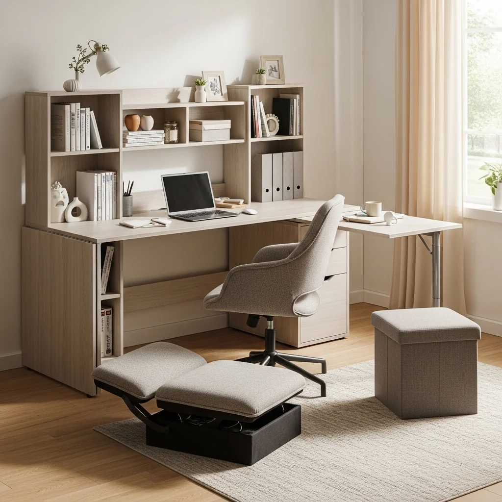 Opt for furniture pieces that serve multiple purposes. A desk with built-in shelves or a foldable table can maximize space while providing functionality. Consider a comfortable chair that doubles as a guest seat, or a storage ottoman that can hold supplies.