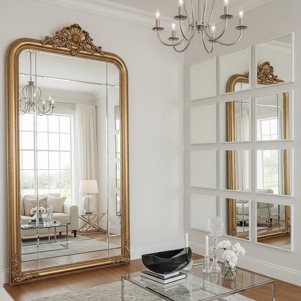 Strategically place mirrors to give the illusion of a larger space. They reflect light and create a sense of openness. A large statement mirror can also act as a beautiful focal point.