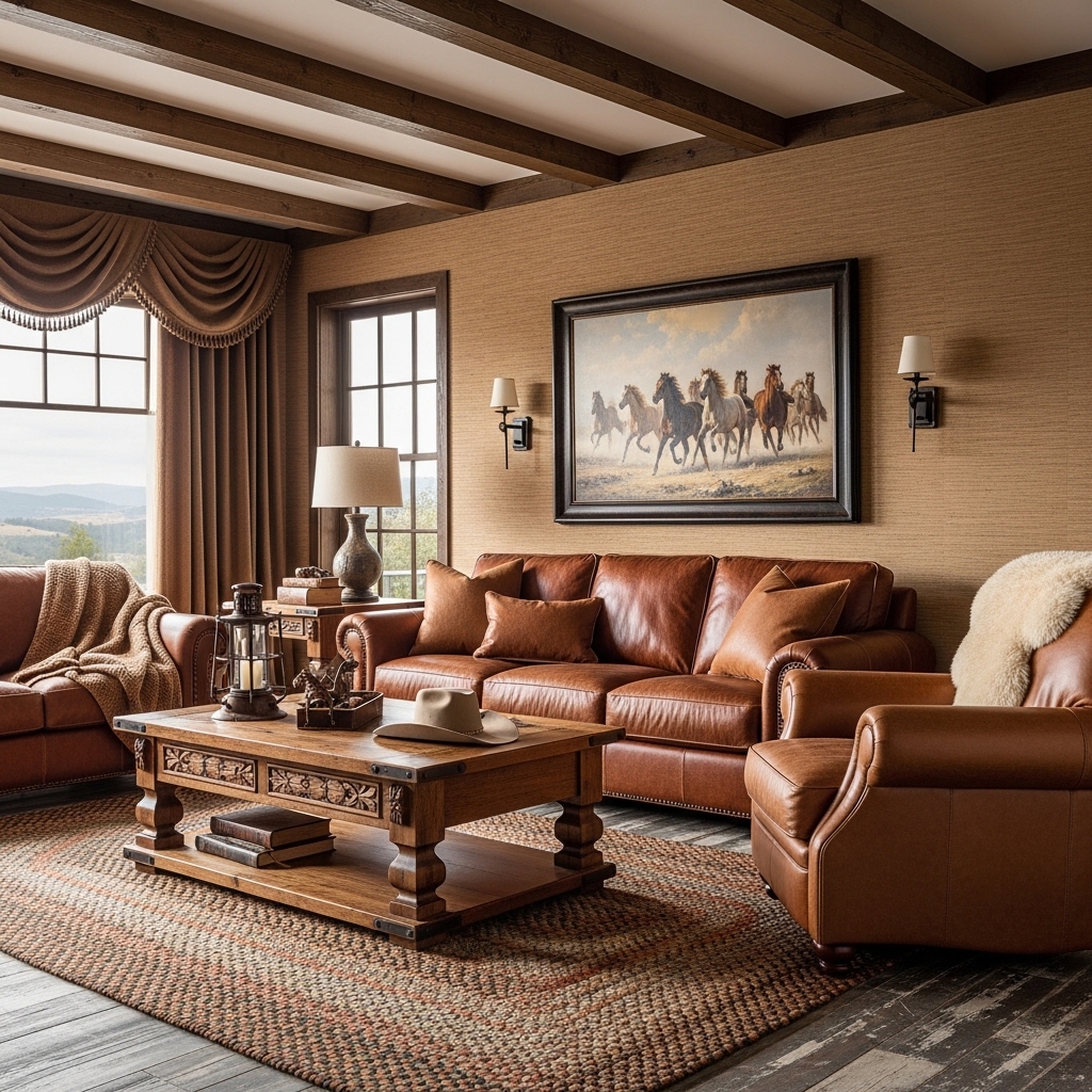 Leather furnishings are quintessential in Western decor. Opt for rich, earthy tones like caramel or deep brown. A well-worn leather couch or oversized armchair not only fosters comfort but also adds a touch of rugged elegance.