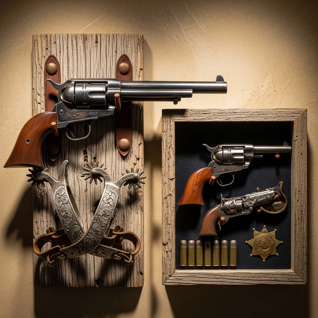 For the true Western enthusiast, guns and spurs can be displayed as art pieces. Whether mounted as wall decor or featured in a shadow box, these items can serve as conversation starters while paying homage to the Western heritage.