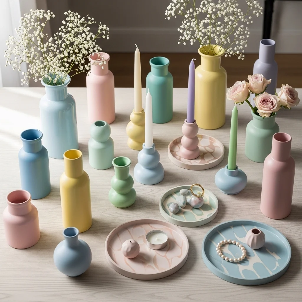 Accessorizing is key to fully embracing the pastel theme. Opt for pastel vases, candle holders, and decorative trays. These small touches can transform a standard space into a serene sanctuary without overwhelming the visual palette.