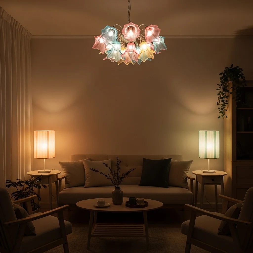 Consider lighting fixtures in gentle hues—think a pastel chandelier or lampshades that diffuse light in soft tones. This can create a warm and inviting atmosphere, especially in the evening when the lights are dimmed.