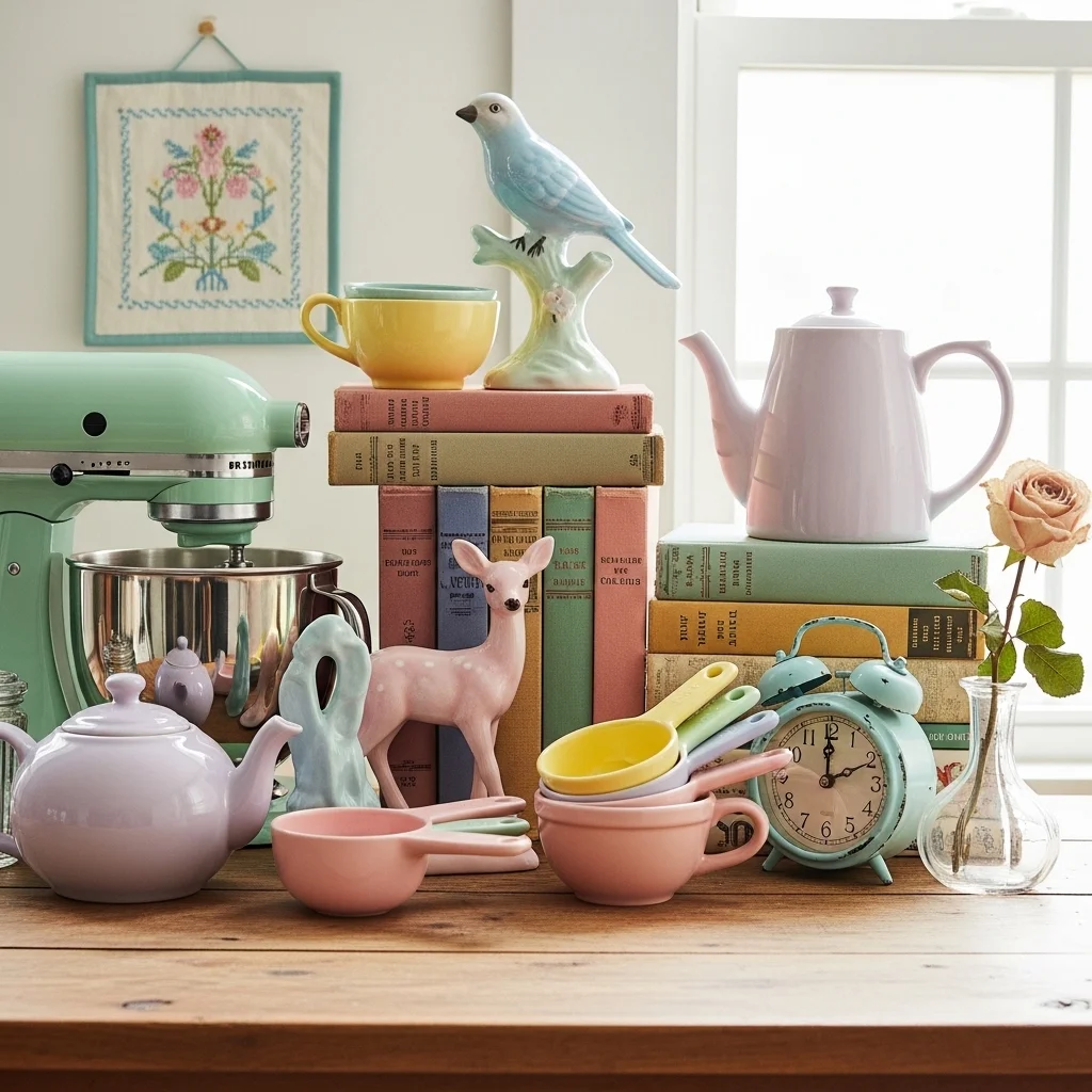 Scour thrift stores for vintage pastel decor items, such as ceramic figurines or retro kitchenware. These unique finds can add character to your home while still promoting a soft, serene vibe.